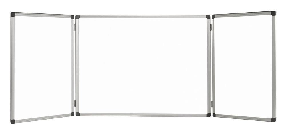 Sklopiva bijela ploča s trostruko većom korisnom površinom. Za pisanje markerima za bijelu ploču i za pričvršćivanje magneta. Pokretne ploče omogućuju pisanje na obje strane. Pogodna za prikrivanje prethodno napisanog ili povjerljivog sadržaja. Idealna za edukaciju i prezentacije.