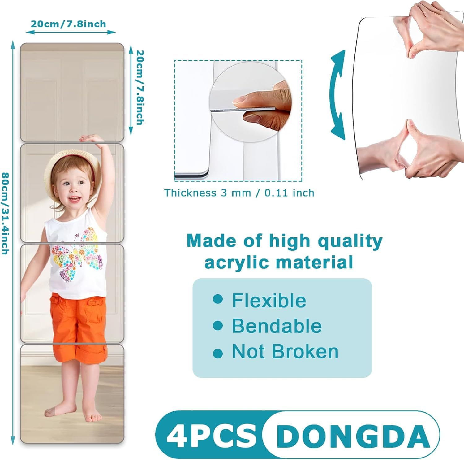 Nikcorp Set od 4 samoljepljiva akrilna ogledala 20x20 cm, debljina 3 mm, zidne naljepnice s efektom zrcala za dekoraciju doma