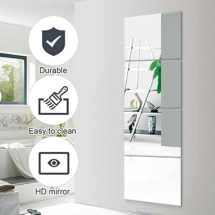 Netscroll Zrcalne zidne naljepnice, set od 4 kom, akrilno ogledalo, 2 mm debljine, zidno ogledalo samoljepljivo,za pločice, staklo, drvo i metal, ReflectMirror