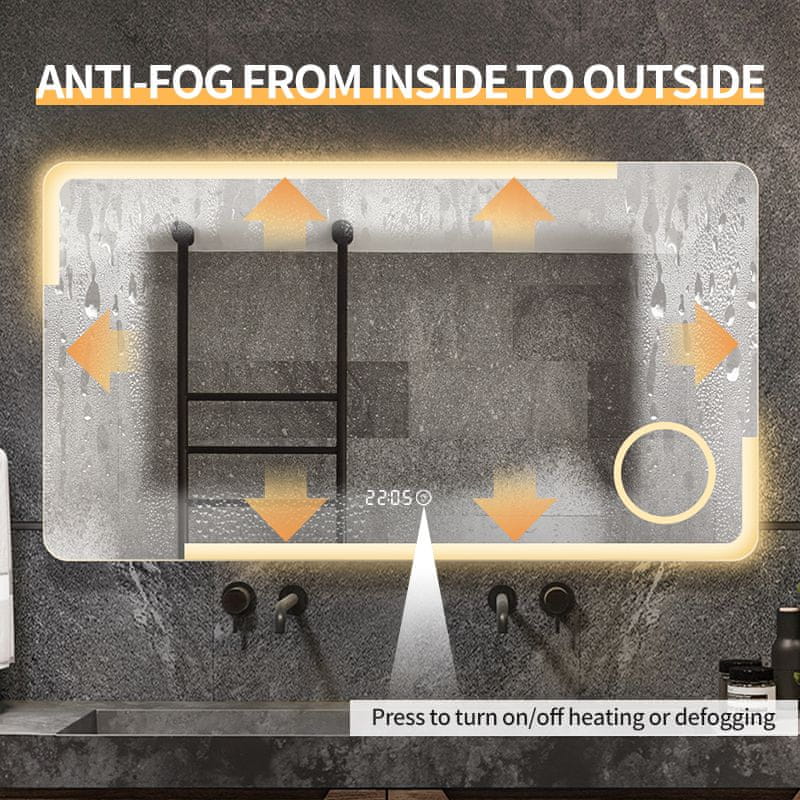 LED ogledalo S62A iznimno je elegantnog izgleda i šarmantnog dizajna koji potpuno oživljava kupaonicu. LED svjetlo prodire kroz zaobljeni mat rub, na vrhu i dnu ogledala, tako da će kupaonica biti potpuno osvijetljena. LED ogledalo S62A ima manje povećalo, idealno za šminkanje. Ogledalo za povećanje ima i LED osvjetljenje pa je još funkcionalnije. Ogledalo ima funkciju paljenja i gašenja LED rasvjete, s prekidačem na dodir također je moguće podesiti tri tona LED svjetla, od hladno bijele do tople bijele, te intenzitet svjetla – prigušivanje. Ogledalo ima i funkciju grijanja koja sprječava zamagljivanje ogledala. Posebnost ogledala je dodatna funkcija koja omogućuje prikaz sobne temperature i vremena. Stražnja strana ogledala je izrađena od aluminija i spremna je za montažu na zid.