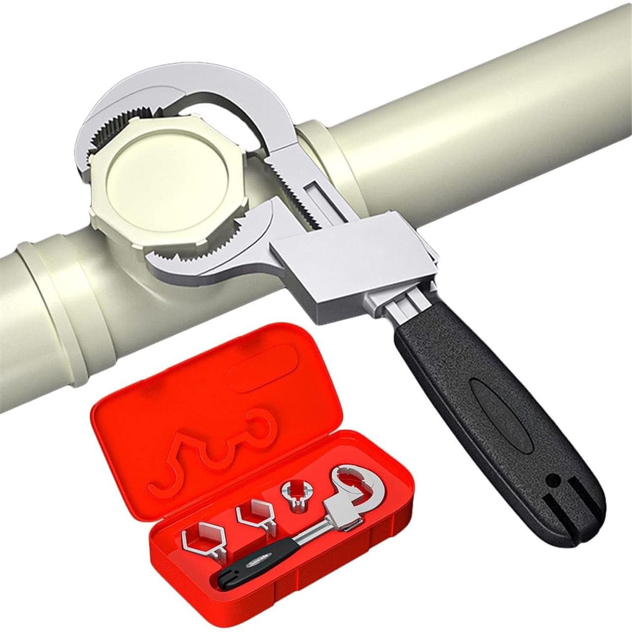 Netscroll Univerzalni podesivi ključ, otvor do 80 mm, 3 nastavka uključena, lagana aluminijska slitina, ključ za cijevi za kupaonice, dom i radionicu, UniWrench