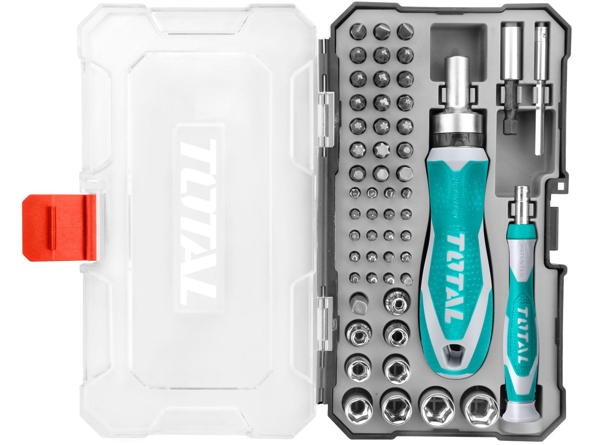 Total Odvijač s čegrtaljkom TACSD30556 odvijač s čegrtaljkom i urarskim ključem s maticama i vrhovima, set od 55 dijelova, industrijski