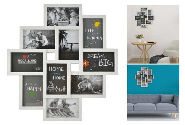 OKVIR ZA 10 FOTOGRAFIJA PRAKTIČAN – u okvir stane na jedno mjesto do 10 fotografija maksimalnih dimenzija 10×15cm (s vanjske strane je vidljiv format 9×14cm); zahvaljujući povezanim elementima štedimo prostor kod kuće za postavljanje tradicionalnih 10 okvira; jednostavan način kako bez napora