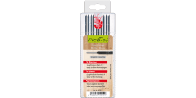 Set sadrži 10 grafitnih sivih mina za označavanje tvrdoće H. Idealno za označavanje jasnih linija. Pogodne su za označavanje suhih površina i materijala. Naoštrene mine pohranjene s u priručnoj, sigurnoj kutiji.