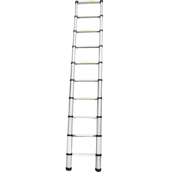 Teleskopska aluminijska ljestve s novom razvijenom tehnologijom mekog zatvaranja uz pomoć zraka, koja uklanja opasnost od ozljeda prstiju. Laka za prenošenje i podesiva po visini. Opremljena je s protukliznim gumiranim jastučićima za veću sigurnost. Kompaktno skladištenje.
