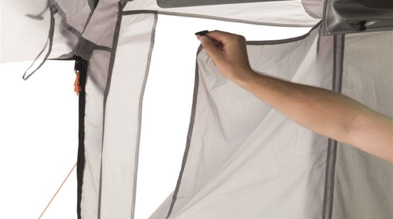 Šator Easy Camp Crowford širok 190 cm i dugačak 195 cm za pričvršćivanje na vrata prtljažnika. Vrata šatora mogu se podići kao nadstrešnica.