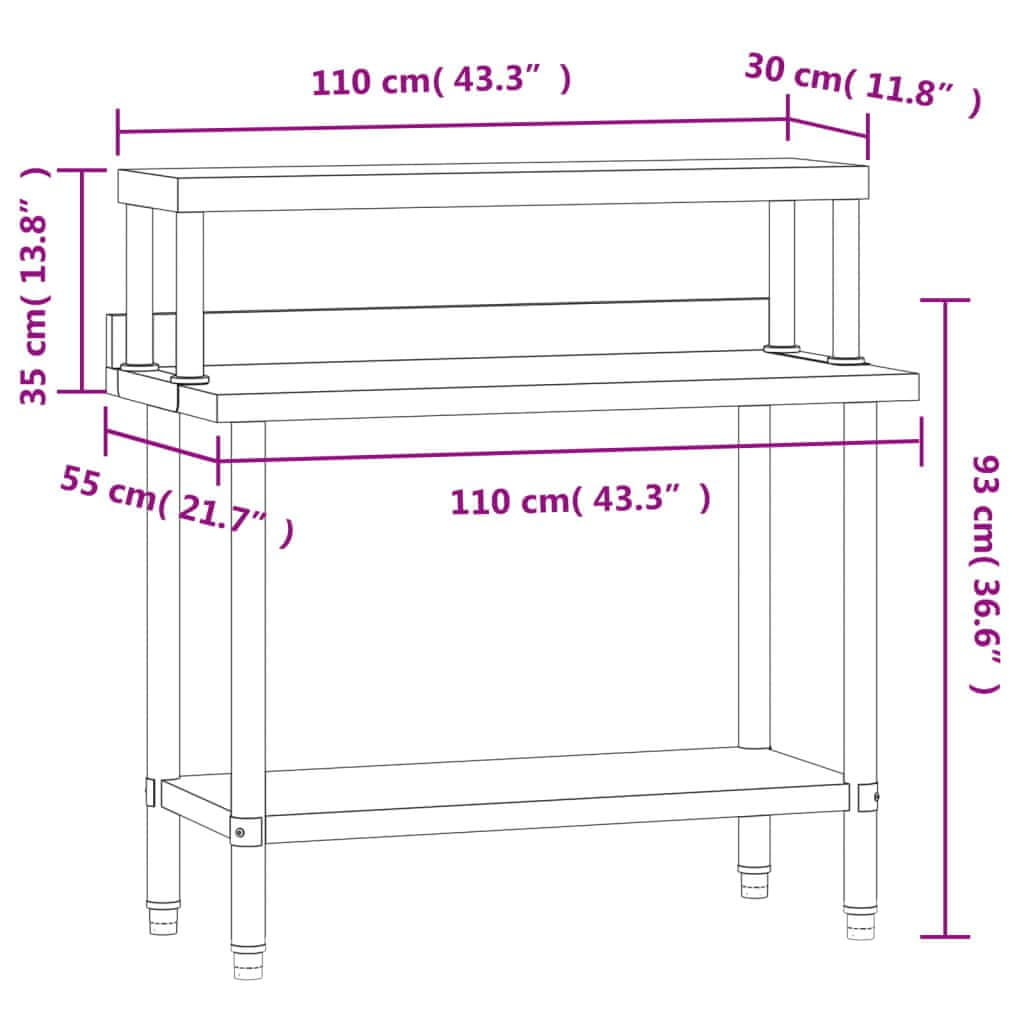 Vidaxl Kuhinjski radni stol s policom 110x55x120 cm nehrđajući čelik