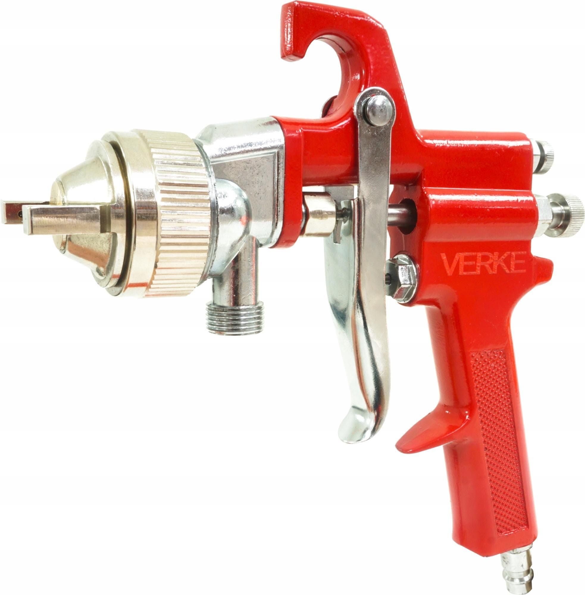 Pneumatski pištolj za prskanje koji se koristi u kombinaciji sa spremnikom za boju. Set se odlikuje vrlo dobrim parametrima prskanja i velikom brzinom lakiranja. Sustav raspršivanja omogućuje korištenje velikih količina boje koje se brzo nanose, čime se štedi vrijeme i novac. Tlačna posuda izrađena od glatkog čelika visoke otpornosti na koroziju. Uređaj se može koristiti za nanošenje gotovo svih boja i lakova, ljepila, emulzija, glazura, boja protiv korozije i tapeta u spreju. Spremnik je opremljen s 4 okretna kotača za jednostavno pomicanje.