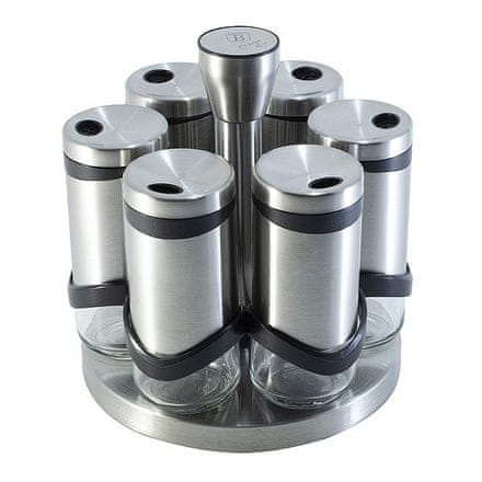 - materijal: nehrđajući čelik / staklo – set uključuje: stalak, 6× staklenki za začine – volumen staklenke za začine: 120 ml – podesiva veličina otvora, pogodno za razne vrste začina – rotirajući.