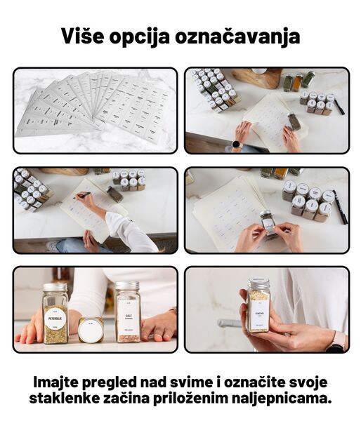 ✔ ZA OPTIMALNU ORGANIZACIJU – S 24 staklenke za začine ponosno izložite svoje začine i bilje na elegantan i skladan način. Staklenke možete postaviti i na naše 4-polne stalke za začine.