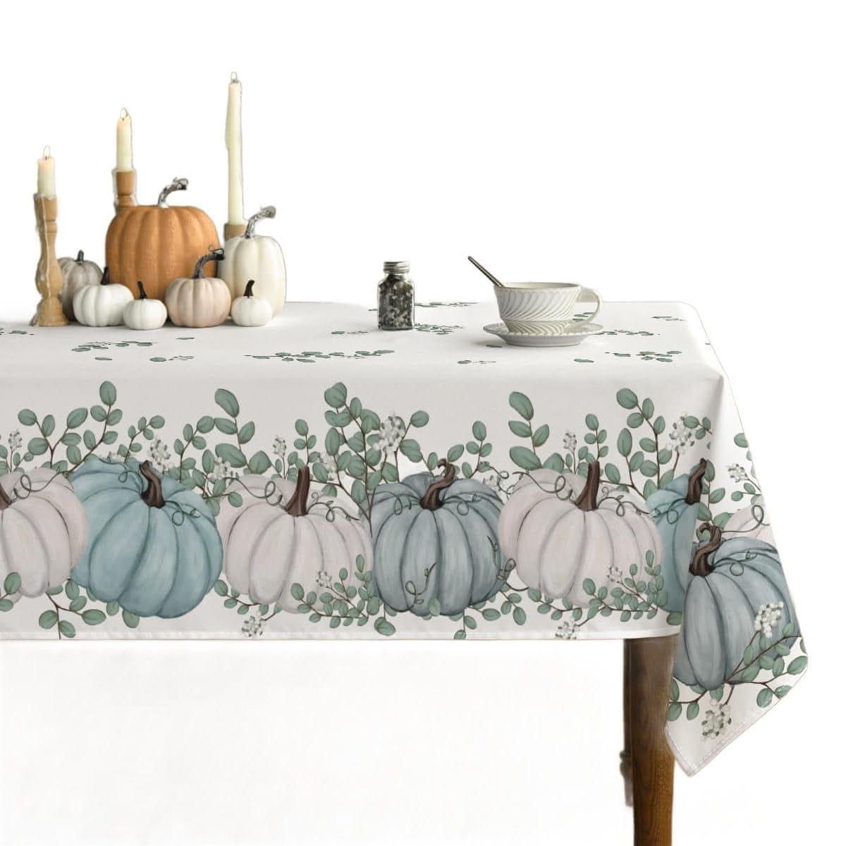 Nikcorp Kvadratni stolnjak za zaštitu stola od ogrebotina i mrlja, periv u perilici, karirani uzorak s plavim bundevama, 84x84 cm