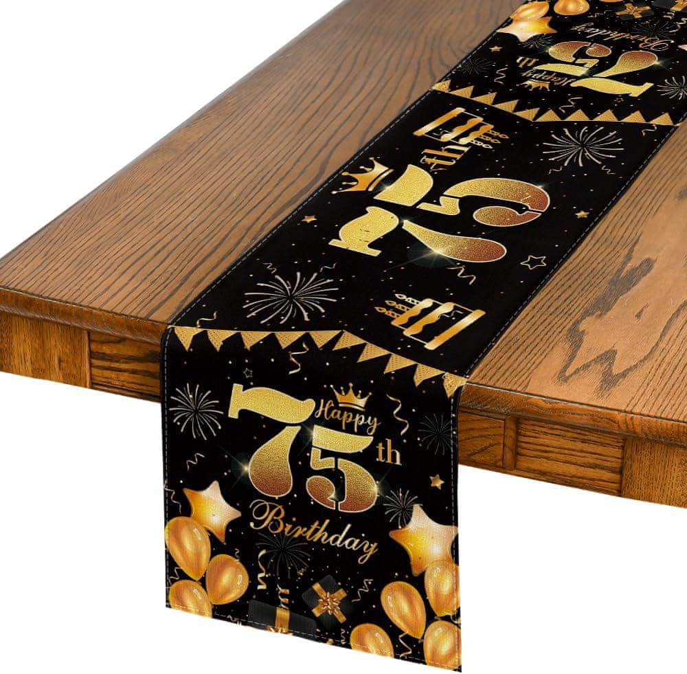 Stolna Dekoracija za Proslavu 75. Rođendana Crno Zlatna 40×140 cm