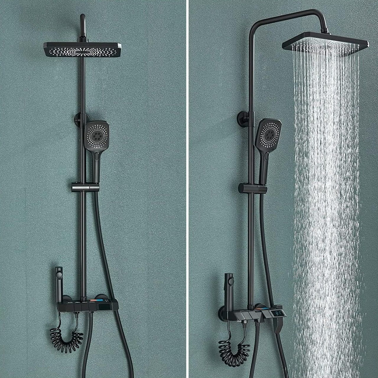 Netscroll Luksuzni tuš set s 3 glave, LED zaslonom za temperaturu, 4 načina izljeva vode, više načina raspršivanja, elegantan dizajn, LuxShowerSet