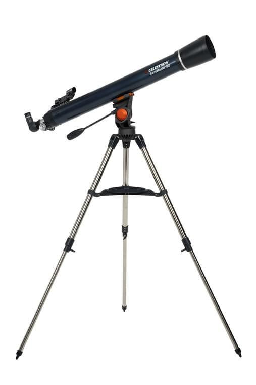 Teleskop Celestron AstroMaster 90 AZ se odlikuje svojim altazimutalnim postavljanjem i 113× povećanjem. Ima okular promjera 20 mm, koji ima povećanje 50× i okular promjera 10 mm s povećanjem 100 x. Teleskop se odlikuje promjerom leće 90 mm i žarišnom duljinom 1000 mm i svjetlosnom snagom f/11. S njim možete vidjeti s mjesece Jupitera i Saturnove prstenove. Da bi lakše pronašli objekte, ugrađeno je Starpointer tražilo. Dostupna je baza podataka (sa 10.000 lozinki i slika) i podnožje s metalnim nogama, koje osigurava stabilnst. |