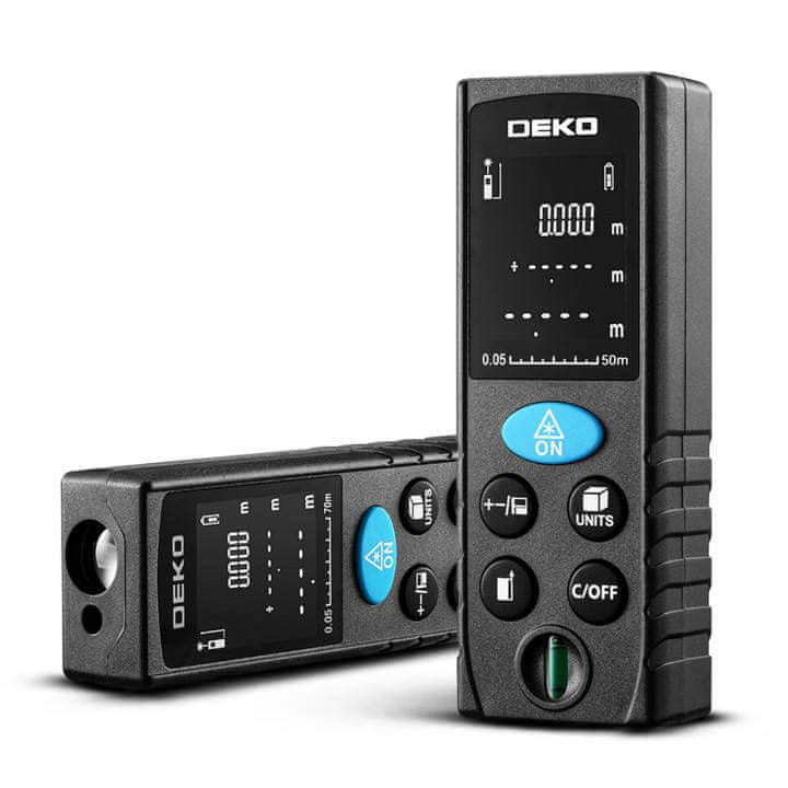 Laserski daljinomjer praktičan je uređaj koji vam omogućuje precizno mjerenje udaljenosti između objekata. Proizvod Deko Tools ima točnost od ±2 mm i domet do 70 m. Omogućuje vam odabir između jedinica kao što su metri, stope i inči i jednostavan je za korištenje s ugrađenim LCD zaslonom. Također ima libelu i nudi nekoliko korisnih funkcija. Napajanje s 2 AAA baterije (nisu uključene).