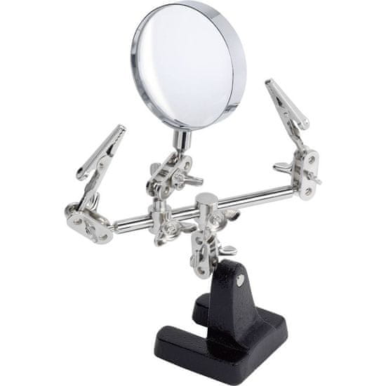 - Opis: Robustan ručni monokular s podnožjem od lijevanog željeza i dvije pomične stezaljke za sigurno i precizno korištenje. Idealno za fino spajkanje, hobije i precizne radove.