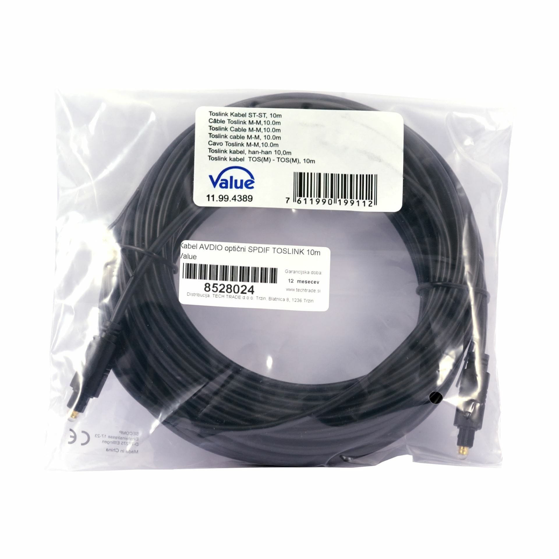 Value S/PDIF digitalnog audio (AUX) optičkog kabela za povezivanje Blu-Ray playera i satelitskih prijemnika s pojačalom ili televizijom, duljina 10m.