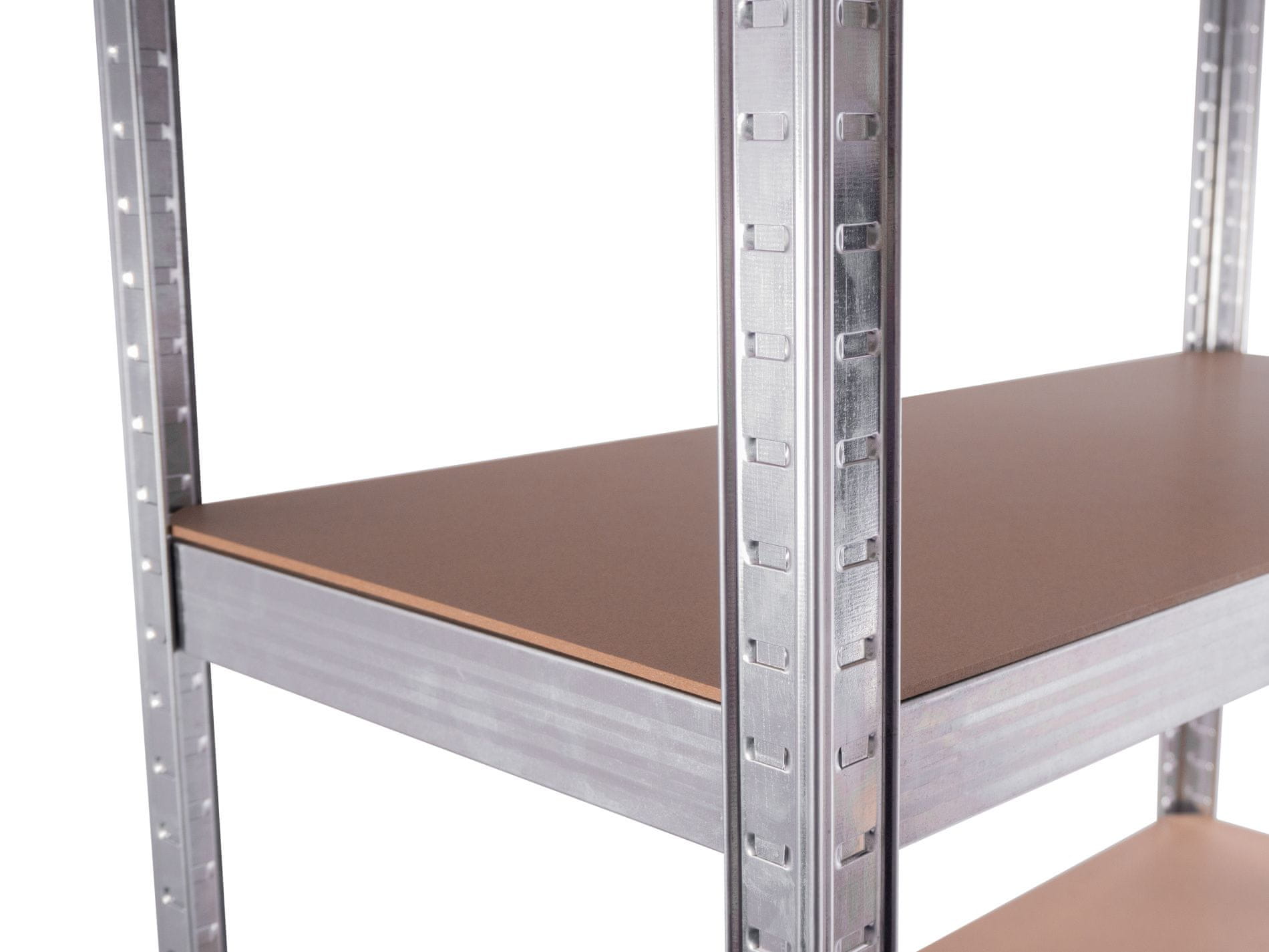 Na visini od cca 174 cm imate na raspolaganju 5 polica od MDF-a, koje se mogu visinski postaviti prema potrebi. Okvir od pocinčanog čelika u srebrnoj boji osigurava stabilnost i veliku nosivost od cca 375 kg (na svaku policu otpada cca 75 kg).