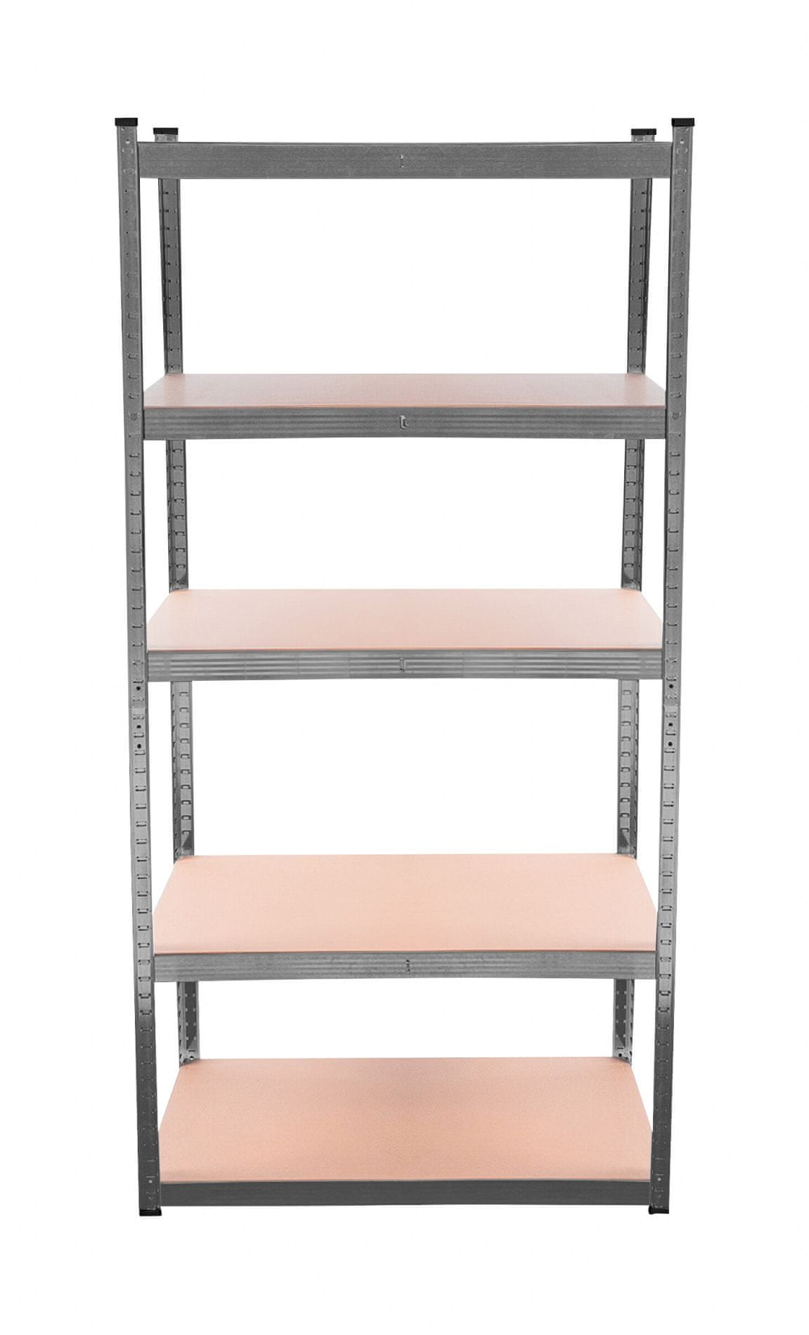 Na visini od cca 180 cm imate na raspolaganju 5 polica od MDF-a koje se mogu visinski postaviti prema potrebi. Okvir od pocinčanog čelika u crnoj boji osigurava stabilnost i veliku nosivost od cca 875 kg (na svaku policu otpada cca 175 kg).