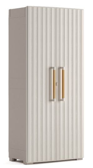 GROOVE TALL ormar marke KETER. Otporan na UV zrake. Prikladno za vrtne dodatke, alate. Opremljen je za korištenje brave. Nosivost police 15 kg. Dimenzije 80×45×180 cm. Težina je 21 kg. Cijeli opis