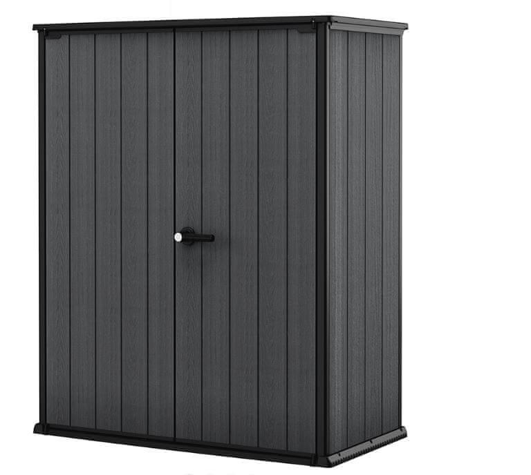 Prostrani ormar Cortina Alto idealno je rješenje za pohranu širokog spektra alata, vrtnog namještaja, jastuka i ostalog pribora. Izrađen je od naprednog materijala EVOTECH, koji elegantnom teksturom oponaša izgled prirodnog drva, dok istovremeno nudi izdržljivost plastike. Ormar ima ojačane stijenke i stabilnu konstrukciju koju je moguće zaključati lokotom za maksimalnu sigurnost. Velika prednost su priložene 2 police nosivosti 16 kg, koje zajedno s kukama omogućuju savršenu organizaciju vaših predmeta u svim vremenskim uvjetima.
