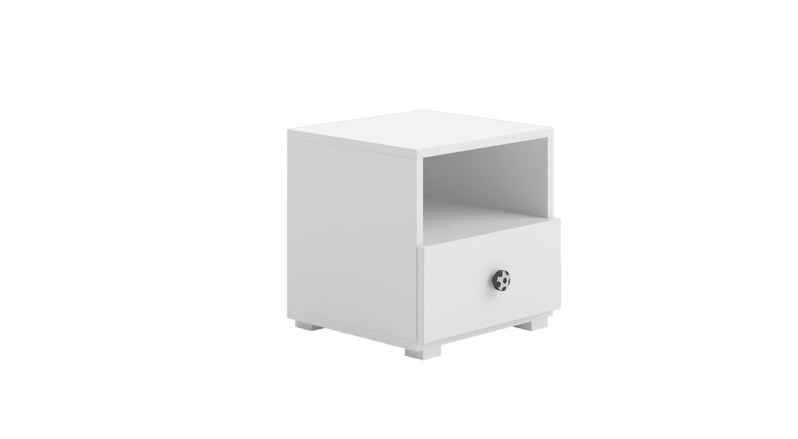 Noćni ormarić EMI dizajniran je imajući na umu udobnost i funkcionalnost. Opremljen praktičnom ladicom, omogućuje pohranu malih predmeta poput knjiga, igračaka ili pribora, čime pomaže u održavanju urednosti. Čvrsta konstrukcija od laminirane ploče za namještaj osigurava izdržljivost i otpornost na svakodnevnu upotrebu. Kao dodatni bonus, možete odabrati ručku u boji, što omogućuje da se ormarić uskladi sa stilom sobe i uvodi element personalizacije koji djeca vole.