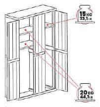 - 3× podesive police nosivosti 15 i 20 kg