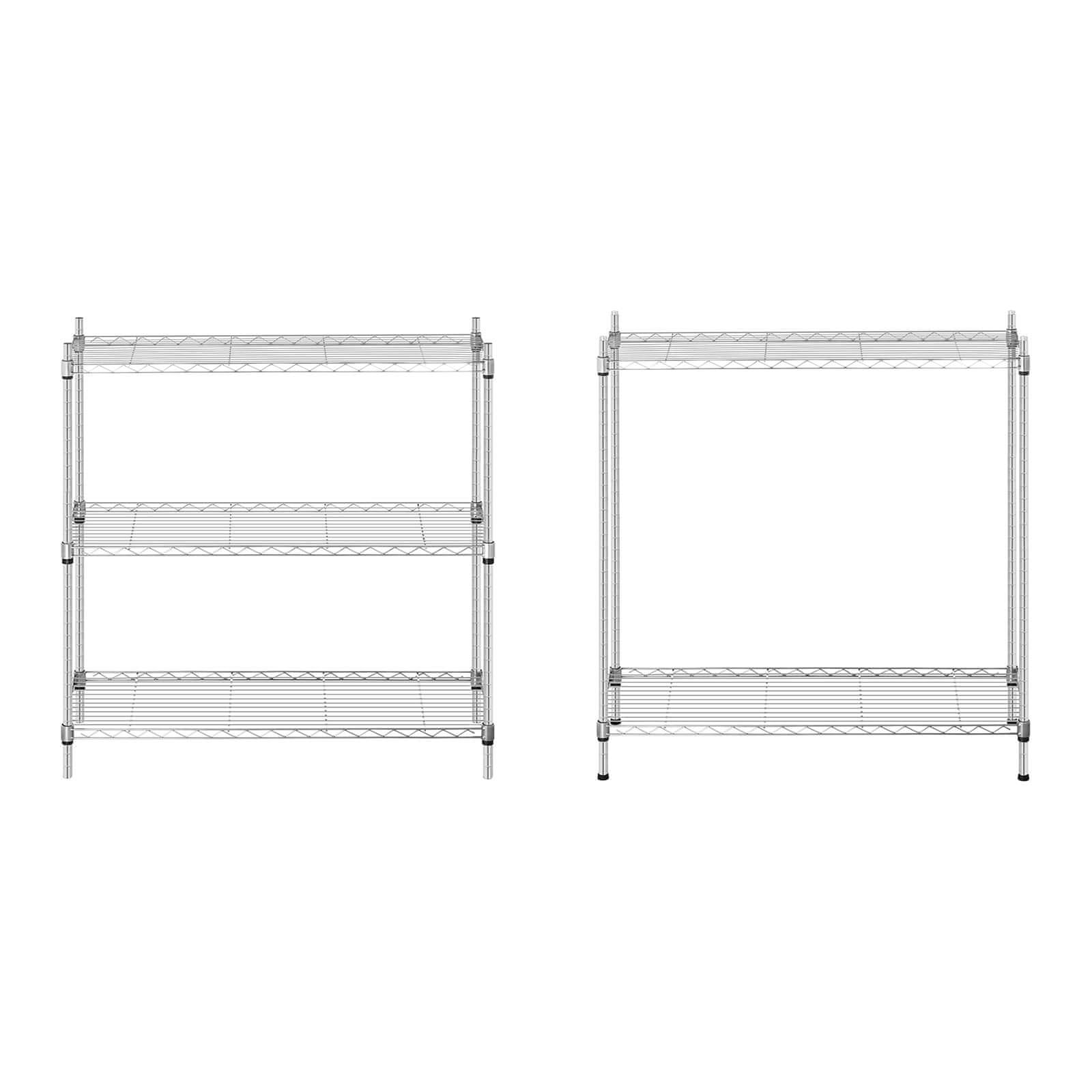 Ove metalne police za skladištenje tvrtke Royal Catering omogućit će vam pohranu mnogih proizvoda zahvaljujući ukupnoj nosivosti do 150 kg . Svaka od pet širokih polica može držati do 30 kg, a udaljenost između njih može se praktično podesiti . Ukupna visina police je 180 cm , ali po potrebi se može podijeliti na dvije manje jedinice.