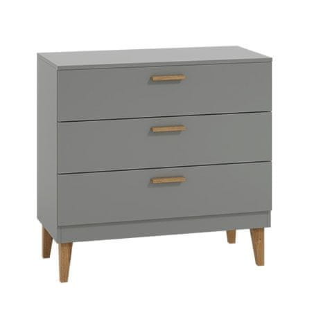 Komoda KELLY može se pohvaliti modernim skandinavskim izgledom koji izgleda sjajno u svakom domu! Moderna kombinacija boja i dizajn modernizirat će vaš dom i stvoriti ugodan ambijent u njemu. Ladičar je podijeljen u tri prostrane ladice u koje možete spremiti obilje igračaka i odjeće. Univerzalni izgled ladičara omogućuje vam upotrebu u različitim prostorijama vašeg doma.