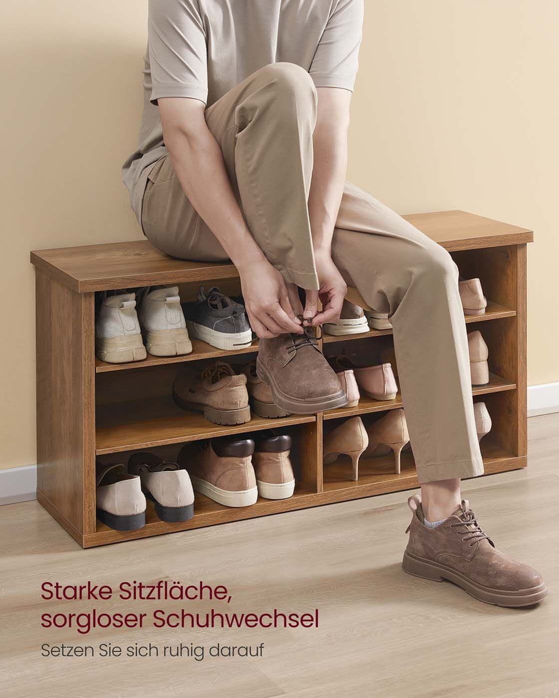Ova klupa za cipele nudi praktičan prostor za pohranu s više pregrada i podesivim policama, što je idealno za organizaciju obuće u hodniku ili dnevnom boravku. Čvrst dizajn također pruža udobno sjedalo dok obuvate ili skidate cipele.