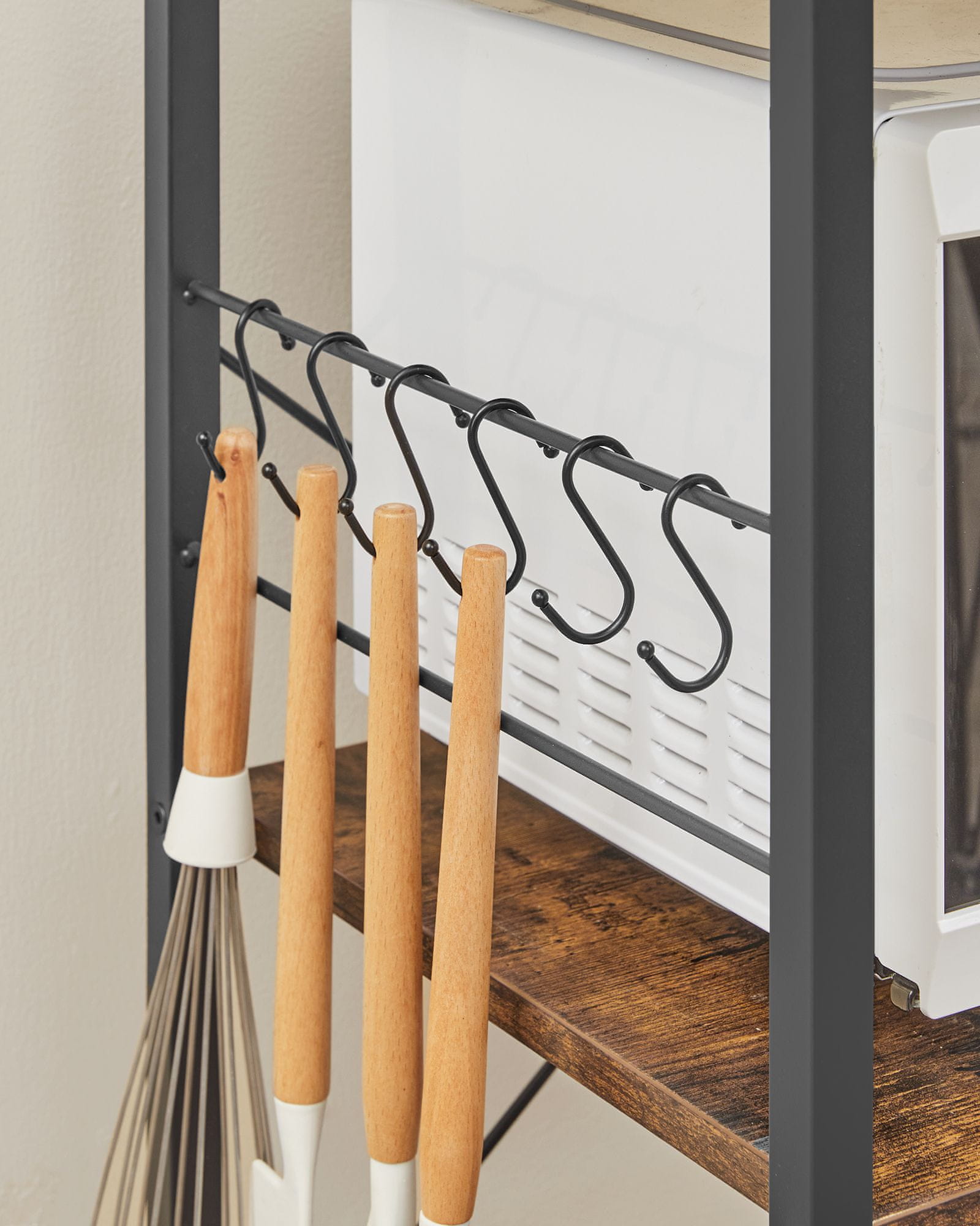 Ova kuhinjska polica pruža dovoljno prostora za pohranu i organizaciju začina, posuđa i pribora za kuhanje. Njena čvrsta konstrukcija čini je idealnom za korištenje kao stalak za mikrovalnu pećnicu ili višenamjenski stalak, pomažući da vaša kuhinja ostane uredna i učinkovita.