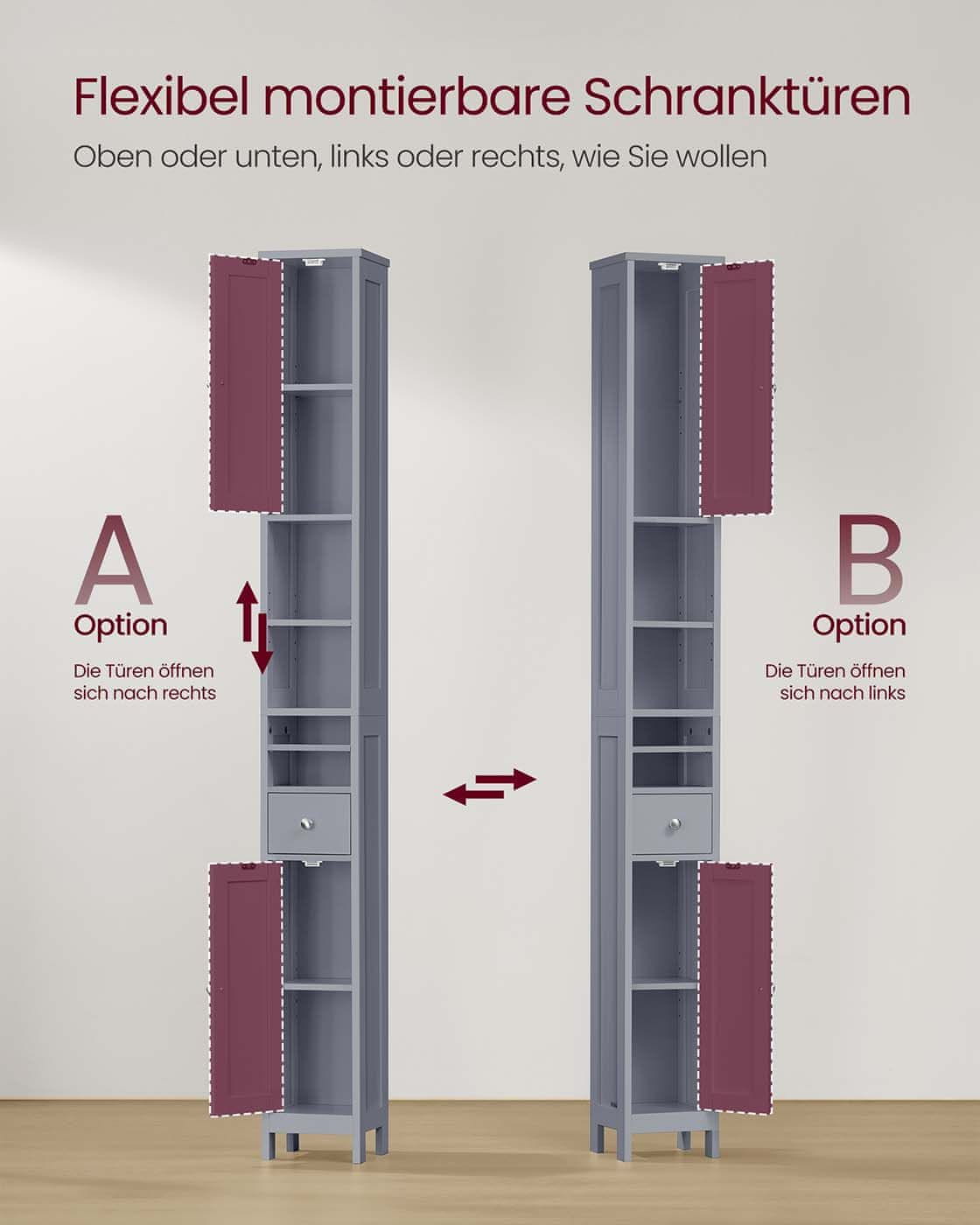 Ovaj visok i uski kupaonski ormarić nudi praktičan prostor za pohranu u malim prostorima. S podesivim policama, ladicom i otvorenim pretincima pomaže održati vašu kupaonicu organiziranom i urednom, istovremeno se besprijekorno uklapajući u moderne interijere.