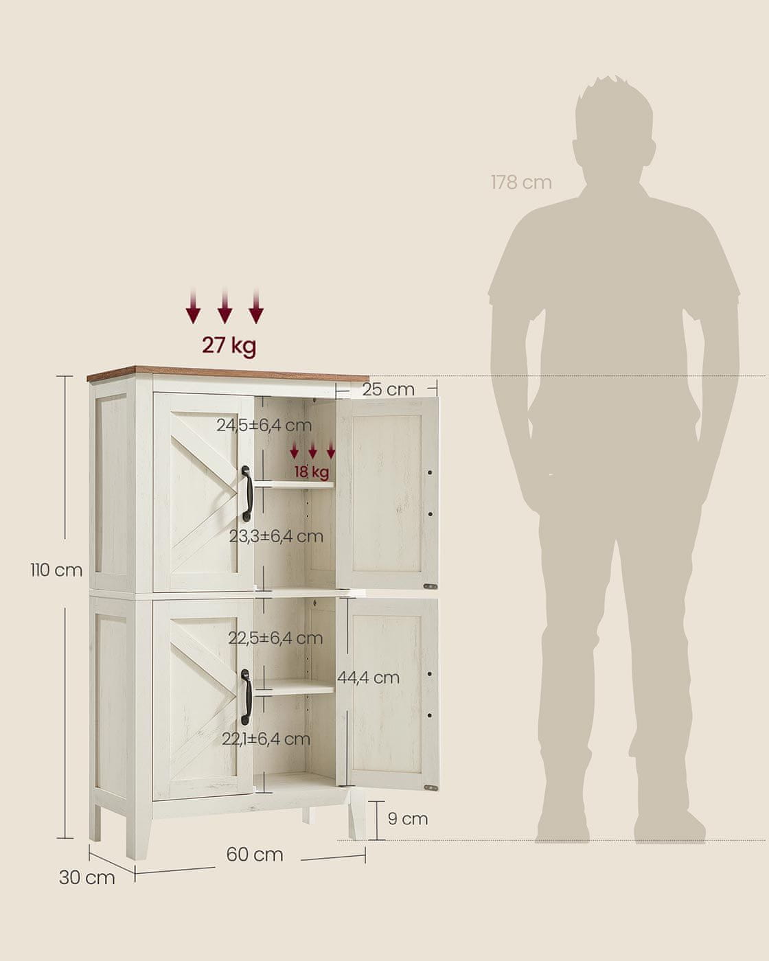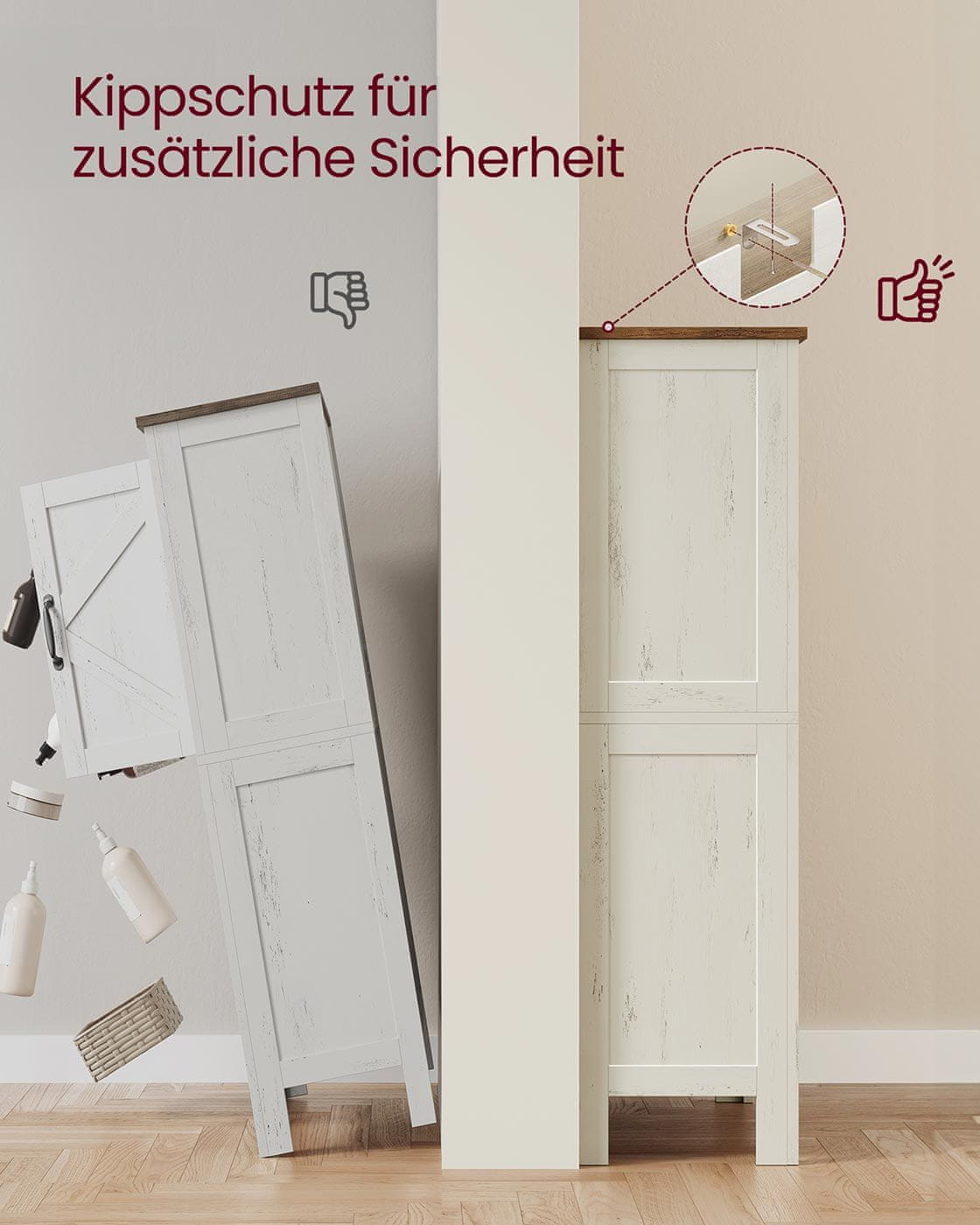 Ovaj samostojeći ormarić za pohranu dizajniran je u šarmantnom stilu seoske kuće što ga čini svestranim dodatkom za bilo koju kupaonicu ili dnevni boravak. S više ladica vratima i podesivim policama nudi praktična rješenja za organizaciju vaših potrepština. Njegova vintage bijela završna obrada dodaje dašak elegancije vašem interijeru.