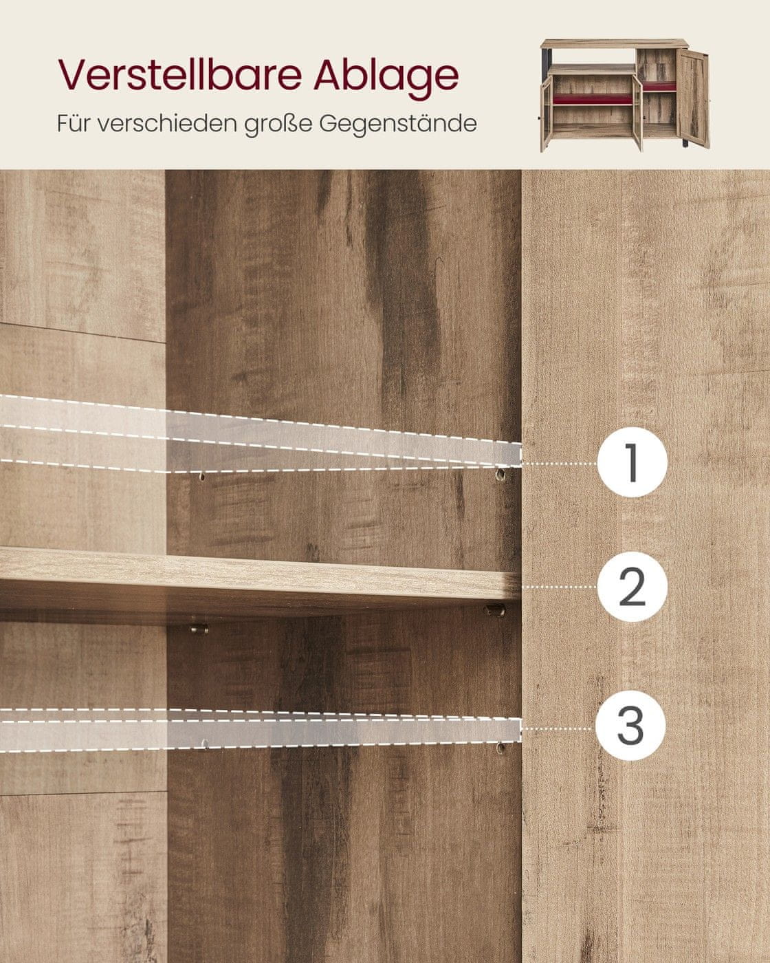 Ovaj kredenc dizajniran je kako bi pružio svestrana rješenja za pohranu u vašem dnevnom boravku kuhinji ili blagovaonici. Njegov industrijski stil i vintage izgled čine ga stilskim dodatkom raznim interijerima. Ormar nudi dovoljno prostora iza tri vrata pomažući vam da vaš dom ostane organiziran i uredan.