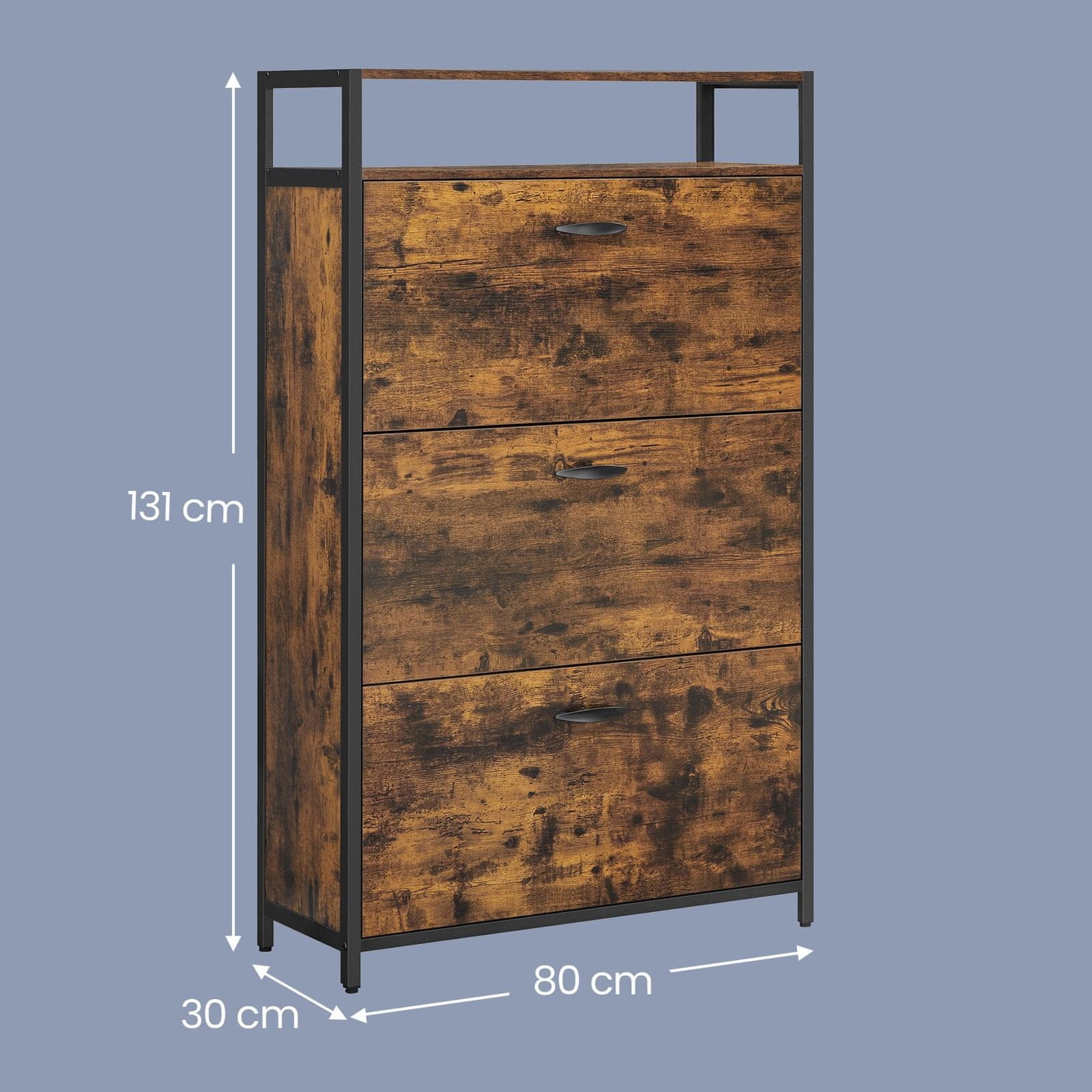 Songmics Ormarić za cipele 3 pretinca 80x30x130 cm smeđa
