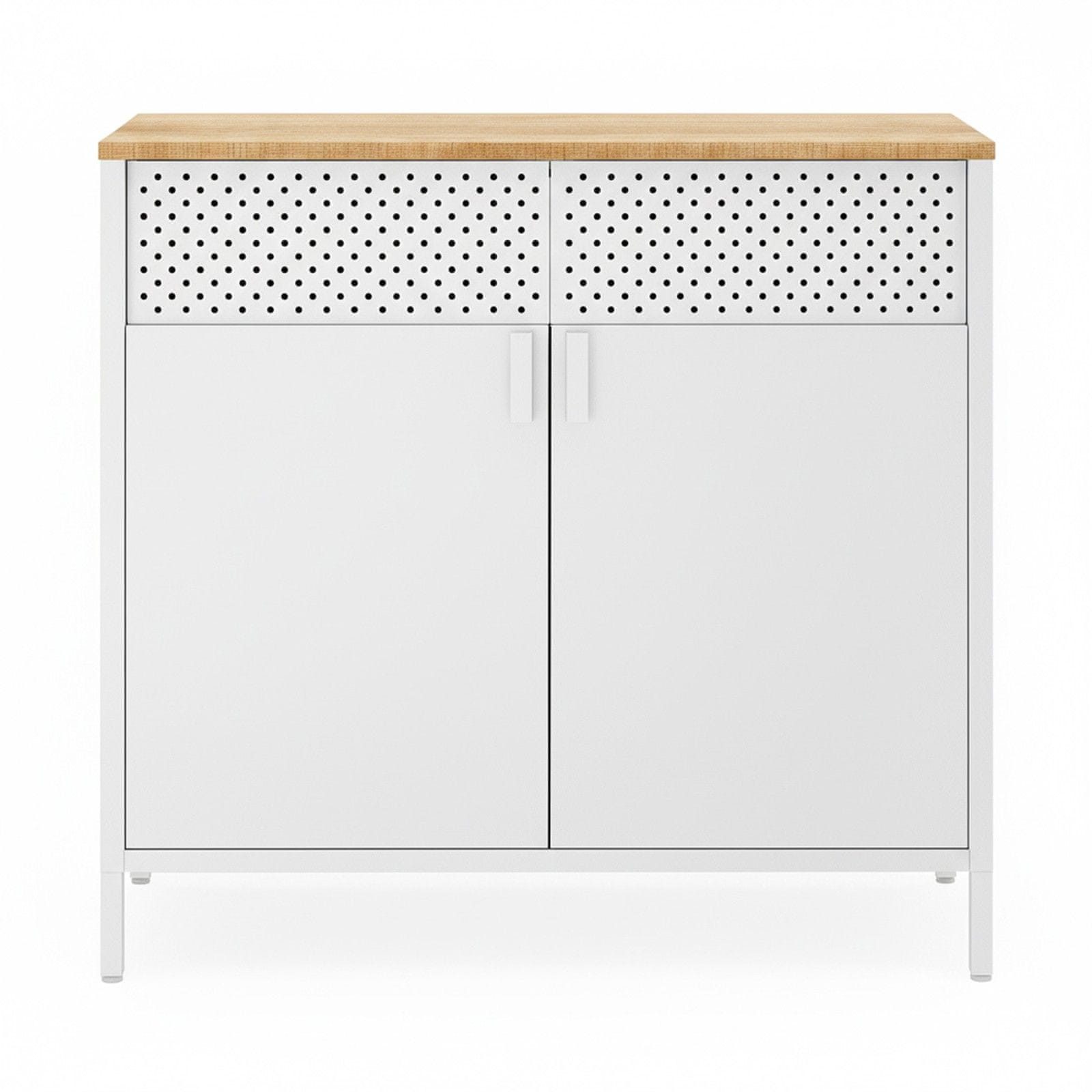 Ovaj ormarić za pohranu nudi praktično i stilsko rješenje za organizaciju raznih predmeta u vašem domu ili uredu. Ima dvokrilna vrata s magnetskim zatvaračem i podesivu policu pružajući fleksibilne opcije za pohranu koje odgovaraju vašim potrebama. Njegova čvrsta konstrukcija i dizajn inspiriran vintage stilom čine ga svestranim dodatkom svakom interijeru.