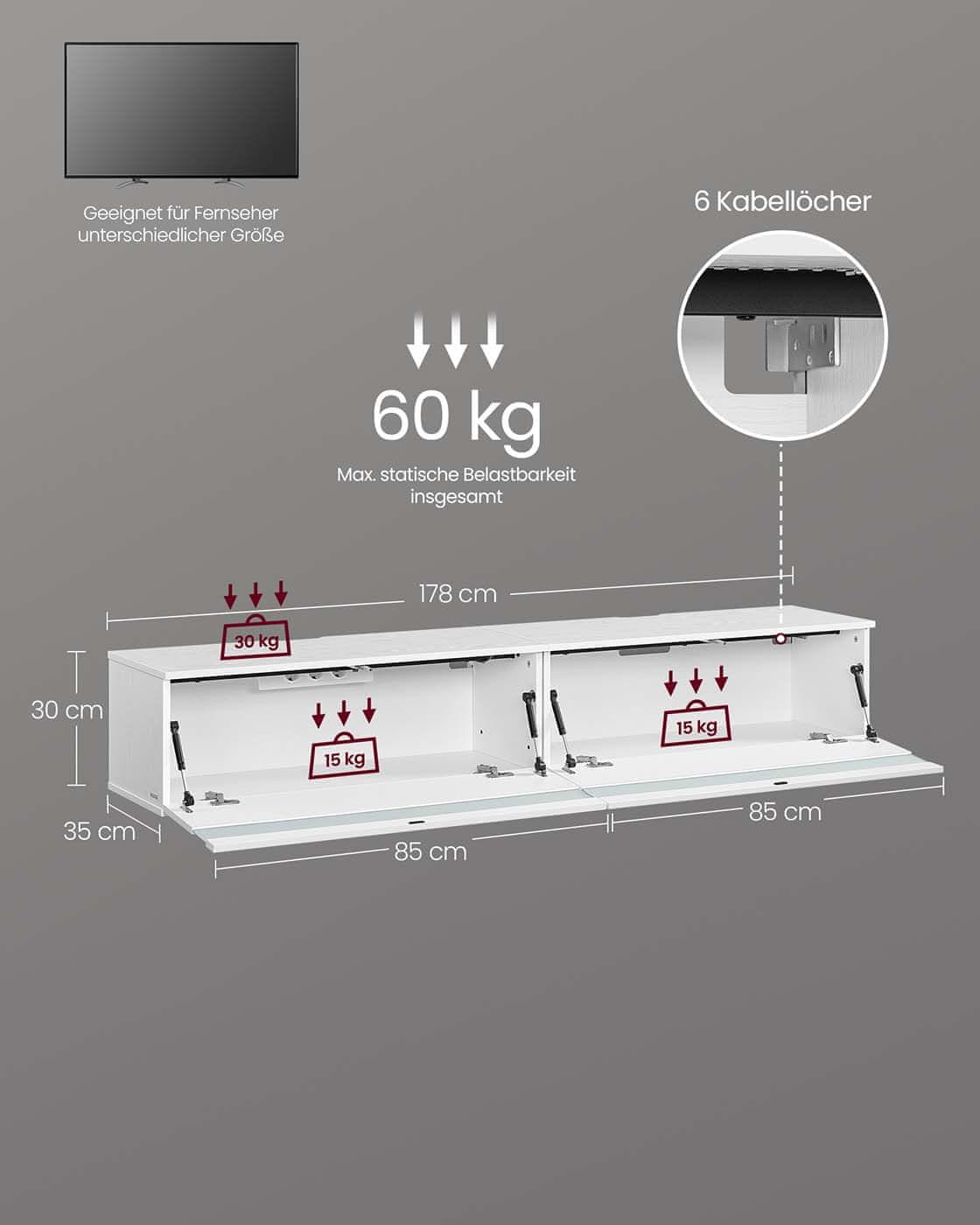 Songmics TV ormarić zidni 178x35x30 cm bijeli