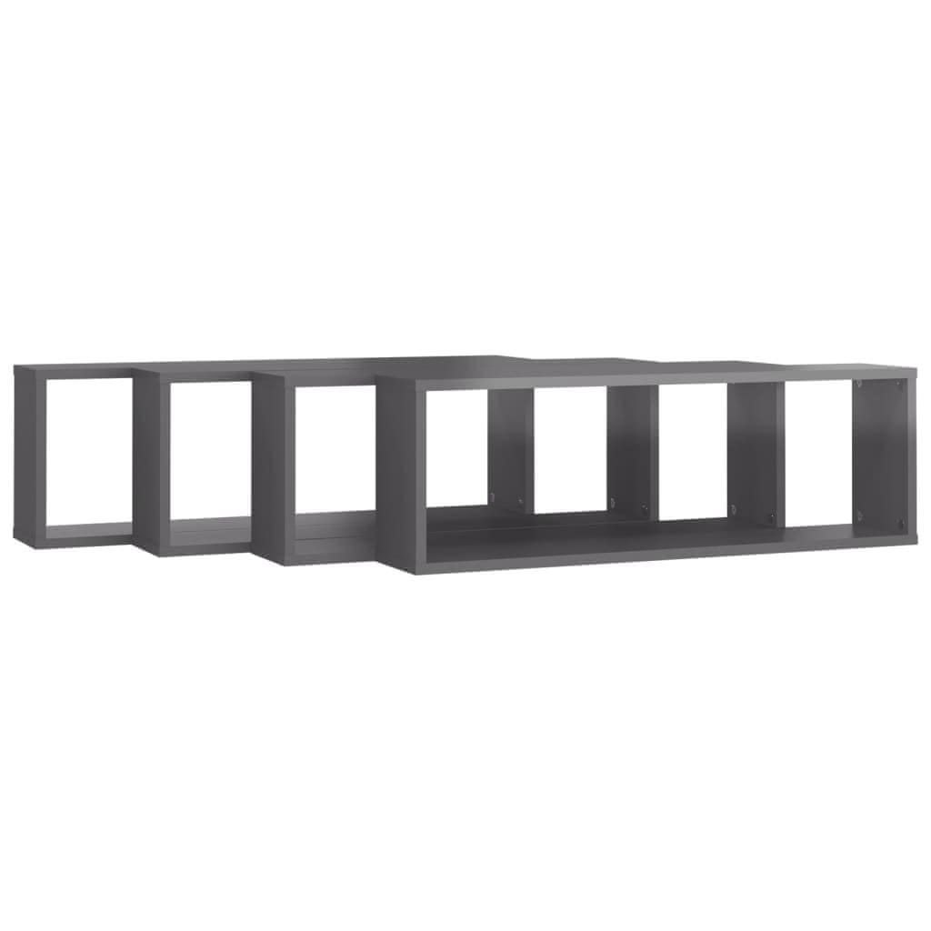 Vidaxl Kockaste zidne police 4 kom sjajne sive 80x15x26,5 cm drvene