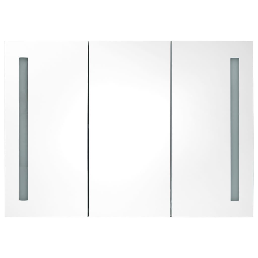 Napravljen je od kvalitetne MDF ploče s premazom od melamina, što osigurava dugotrajnu upotrebu. S dvostrukim energetski učinkovitim LED trakama, možete se vidjeti u najvjernijem svjetlu za nanošenje šminke, dotjerivanje i njegu kože te može osvijetliti vašu prostoriju, vaše lice i vaš osmijeh. Unutrašnjost uključuje 3 police, koje nude dovoljno prostora za pohranu u ormariću za sve vaše toaletne potrepštine i kozmetičke proizvode. Možete lako uključiti/isključiti svjetlo pomoću donjeg gumba. Zbog ovog elegantnog i funkcionalnog ormarića, vaša će prostorija sigurno biti originalno iznimna!