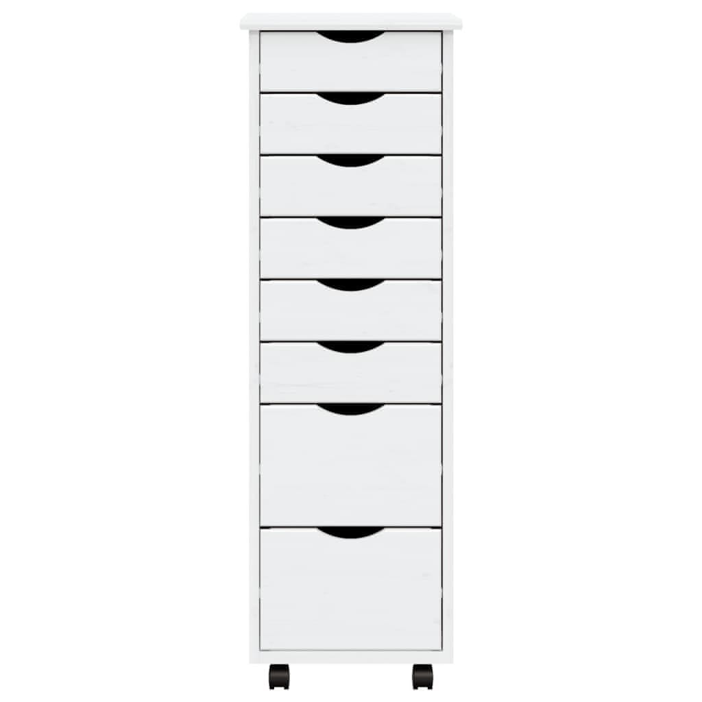Vidaxl Pokretni ormarić s ladicama MOSS bijeli od masivne borovine