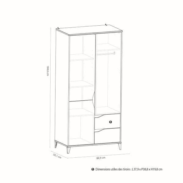Dječja i omladinska garderoba u skandinavskom stilu. Dimenzije: 88,9 × 50,1 × 184,6 cm.