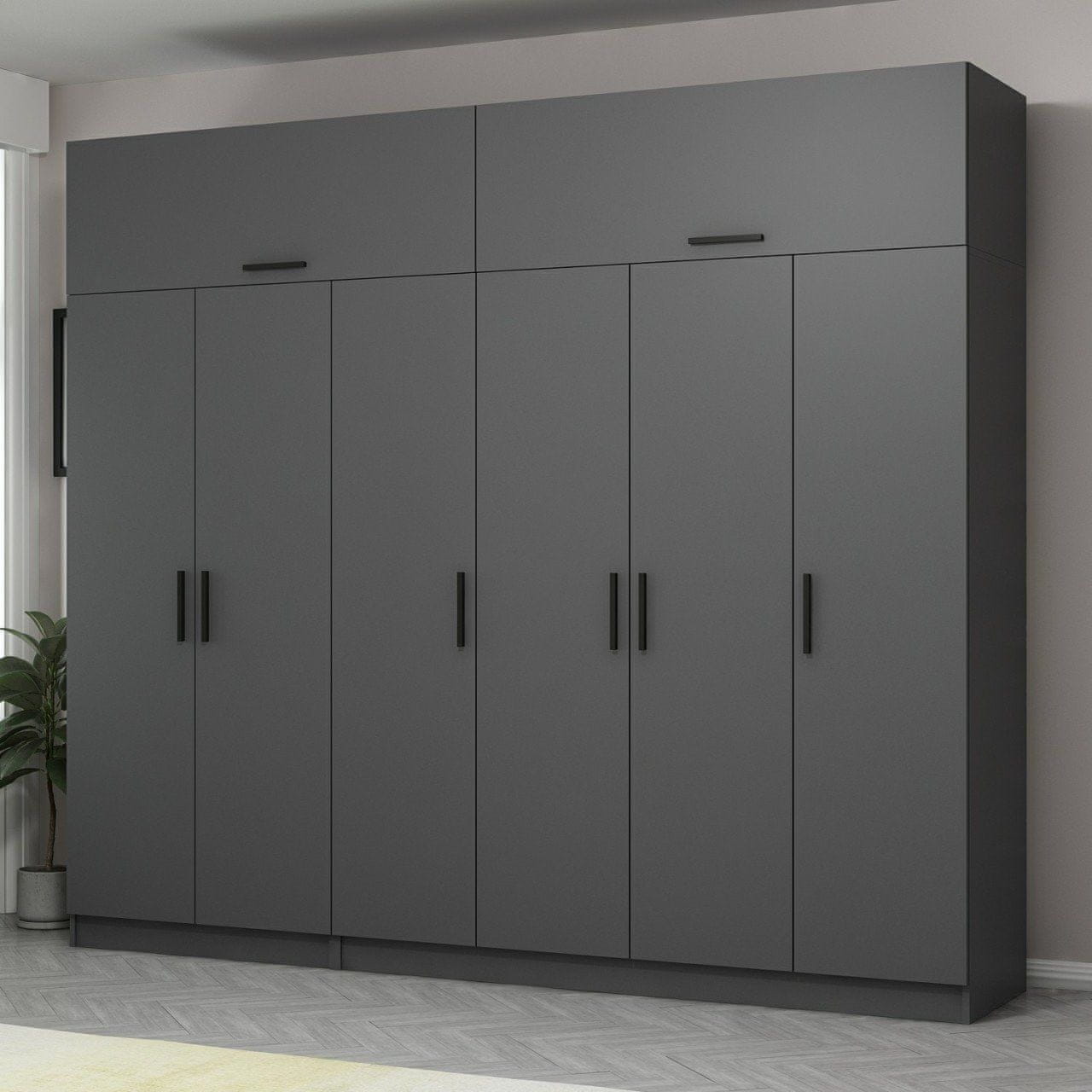 100% čestica obložena melaminom Debljina: 18 mm Širina: visina 270 cm: 235 cm dubina: 52 cm Brojne police, broj paketa: 10 59,5 × 197 × 5 cm – 27,1 kg (1 komad) 59,5 × 97,5 × 12 cm – 29,15 kg (1 komad) 59,5 × 188,5 × 6,5 cm – 30 kg (1 komad) 60 × 147 × 8,5 cm – 31,15 kg (1 komad) 60 × 147 × 8,5 cm – 31,15 kg (1 komad) 59,5 × 196 × 6 cm – 31,75 kg (1 komad) 59,5 × 186 × 6,5 cm – 29 kg (1 komad) 59 × 99,5 × 10 cm – 19,6 kg (1 komad) 52,5 × 192 × 6,5 cm – 28,25 kg (1 komad) 52,5 × 192 × 6,5 cm – 28,25 kg (1 komad)