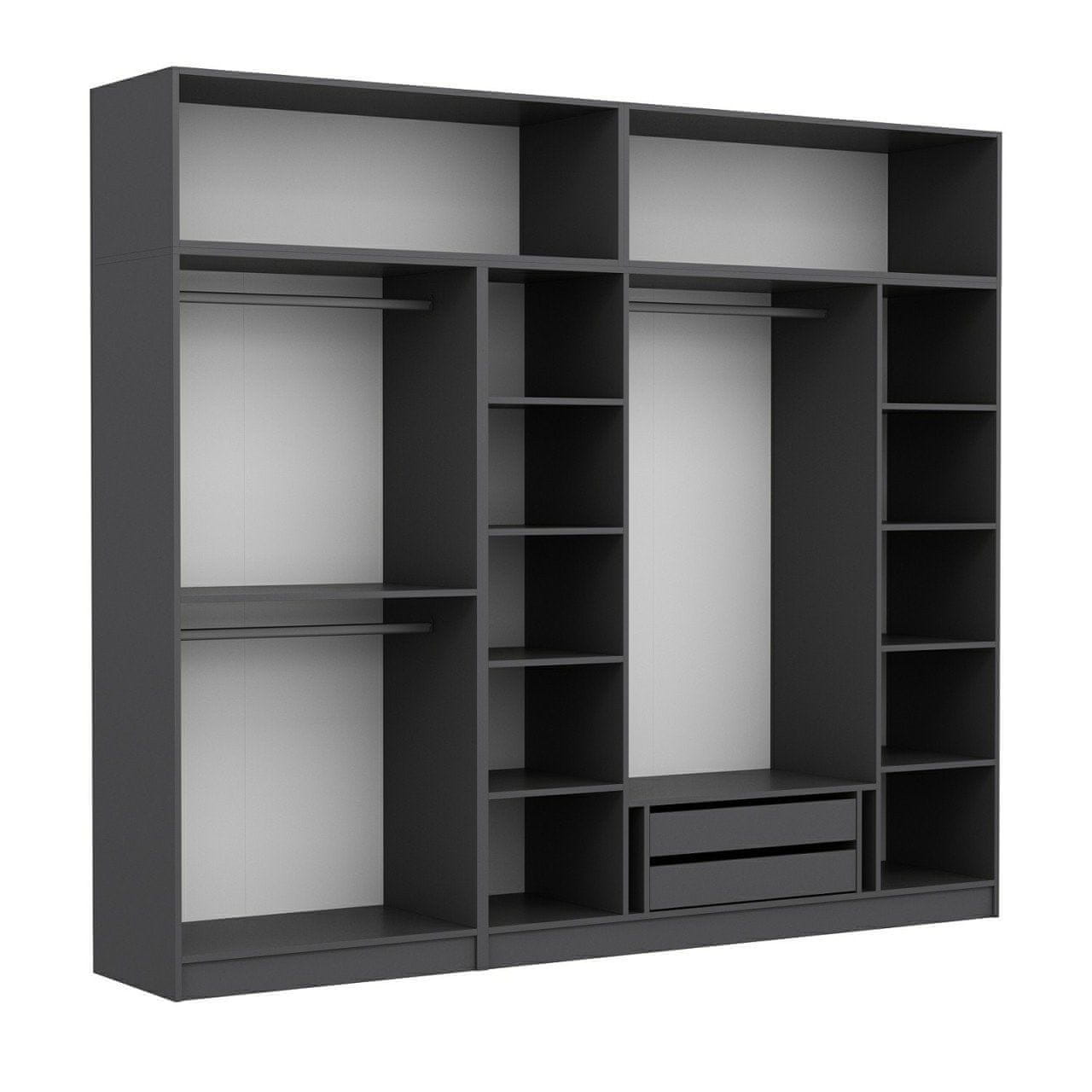 100% čestica obložena melaminom Debljina: 18 mm Širina: visina 270 cm: 255 cm dubina: 52 cm Brojne police, broj paketa: 10 59,5 × 188,5 × 6,5 cm – 30 kg (1 komad) 53 × 211 × 6,5 cm – 30,15 kg (1 komad) 53 × 211 × 6,5 cm – 30,15 kg (1 komad) 60 × 147 × 8,5 cm – 31,15 kg (1 komad) 60 × 147 × 8,5 cm – 31,15 kg (1 komad) 60 × 218 × 6 cm – 34,45 kg (1 komad) 59,5 × 210 × 6,5 cm – 29 kg (1 komad) 60,5 × 218,5 × 5,5 cm – 29,8 kg (1 komad) 59,5 × 97,5 × 12 cm – 29,15 kg (1 komad) 59 × 99,5 × 10 cm – 19,6 kg (1 komad)