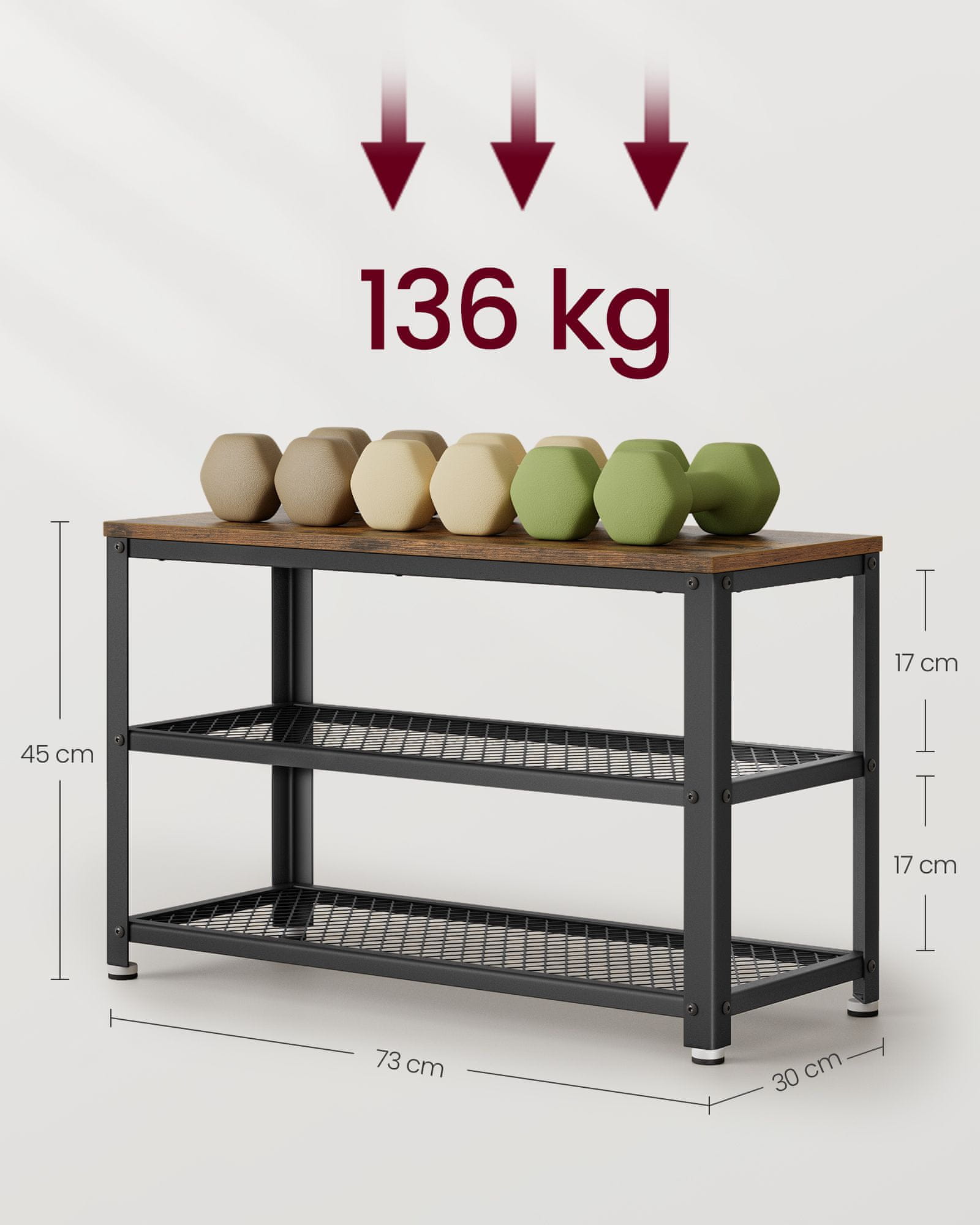 Ova klupa za obuću dizajnirana je kako bi pružila praktično i elegantno rješenje za pohranu u vašem hodniku dnevnoj sobi ili predsoblju. S dvije prostrane police nudi dovoljno mjesta za organizaciju više pari cipela istovremeno održavajući vaš prostor urednim i gostoljubivim. Njena čvrsta konstrukcija i moderan industrijski dizajn čine je funkcionalnim i atraktivnim dodatkom svakom domu.