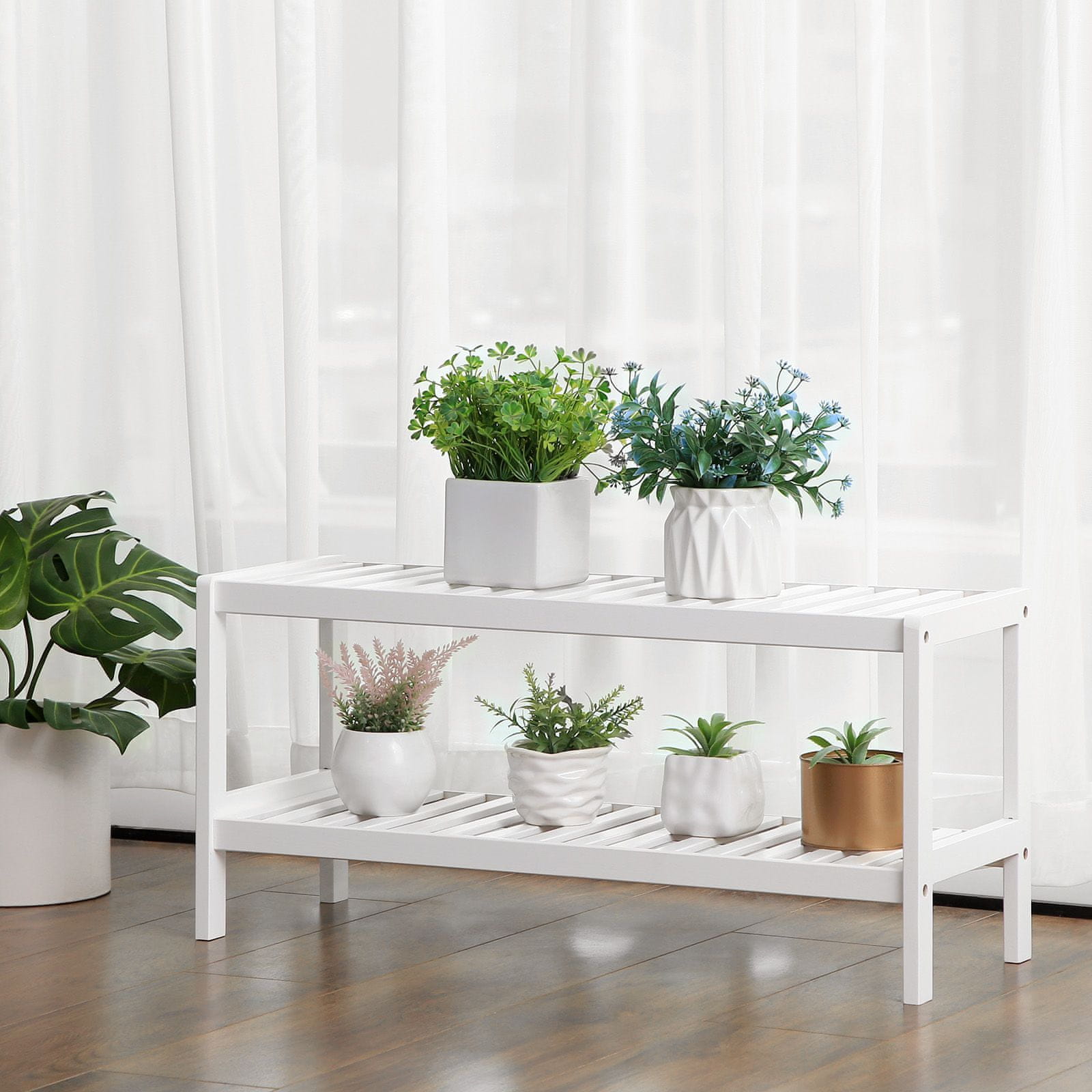 Održavajte svoj ulaz urednim s ovom svestranom policom za cipele s 2 razine, savršenom za organiziranje cipela ili izlaganje biljaka i knjiga. Njezin kompaktan dizajn čini je idealnom za korištenje u dnevnoj sobi, hodniku, spavaćoj sobi ili kupaonici. Uživajte u prostoru bez nereda i sa stilom.