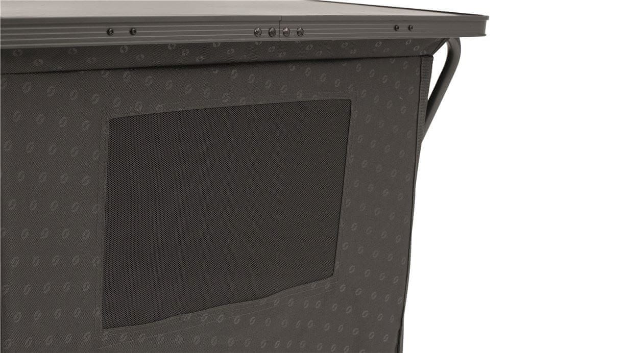 Outwel ormarić s dvije police s vratima i čvrstom površinom za odlaganje. Izvrstan za kampiranje.