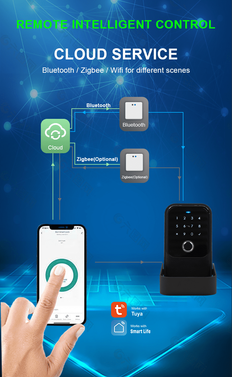 Bluetooth tehnologija omogućuje bežično otključavanje na udaljenosti do 10 metara, što pruža trenutačan pristup bez fizičkog kontakta sa zaključavanjem. Kompatibilna je s aplikacijama Tuya Smart i Smart Life na Android i iOS uređajima.