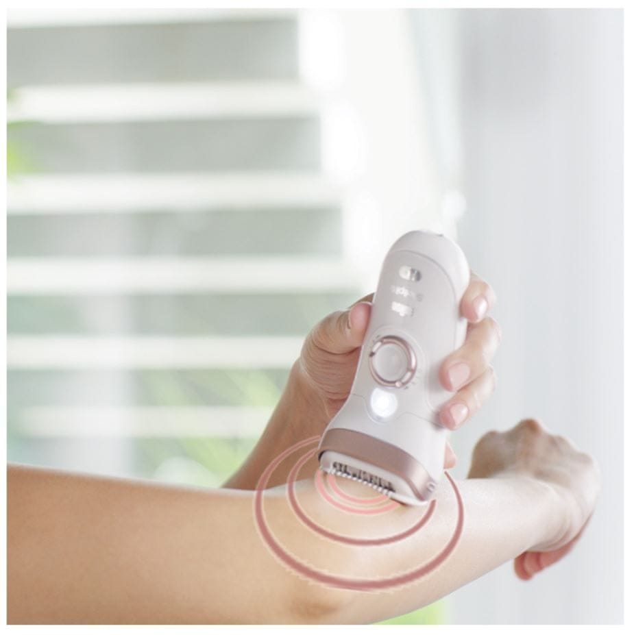 Najveće prednosti epilatoraEpilator marke Braun Silk-Epil 9–890 je prvi pametni epilator na svijetu koji nudi potpunu epilaciju i sustav za njegu kože. Uključuje SensoSmart tehnologiju senzora pritiska, koji regulira pritisak i vodi epilaciju tako da uklanja više dlačica u jednom potezu. Ima 40% širu glavu koja uklanja do 4 puta kraće dlake od voska. Set sadrži 7 dodataka, među kojima ćete naći trimer za tijelo i lice, što omogućuje jednostavnije uređivanje osjetljivih područja. |