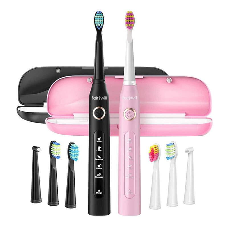 FairyWill Soničke četkice za zube s nastavkom i kutijicom FairyWill FW-507 (crna i ružičasta)