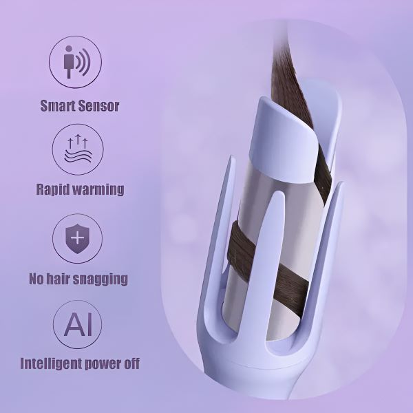FRILLA® Automatski uvijač za kosu s rotacijom, električni styler za kovrče, više razina topline | CURLORA Ljubičasta